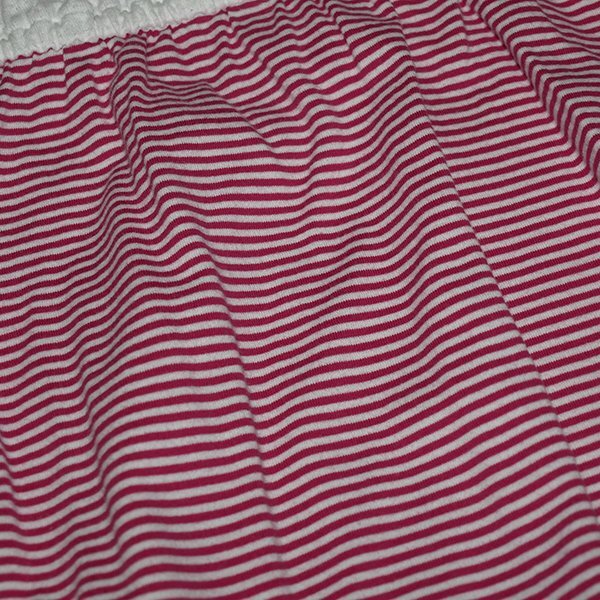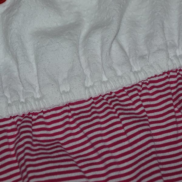 | ◆コメント◆夏らしい濃いPK(ピンク)のボーダーを使用したワンピース。 ボーダー生地はシルケット加工を施しているので、適度な光沢感があります。