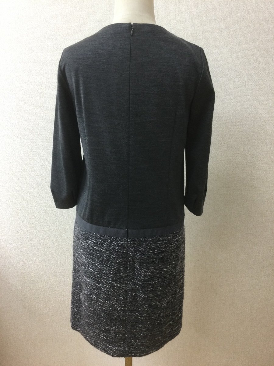 | 管理番号:10^135591 iCB グレーストレッチワンピ 異素材組み合わせ カットソー生地とツイード 表示サイズ:9 実寸(参考)