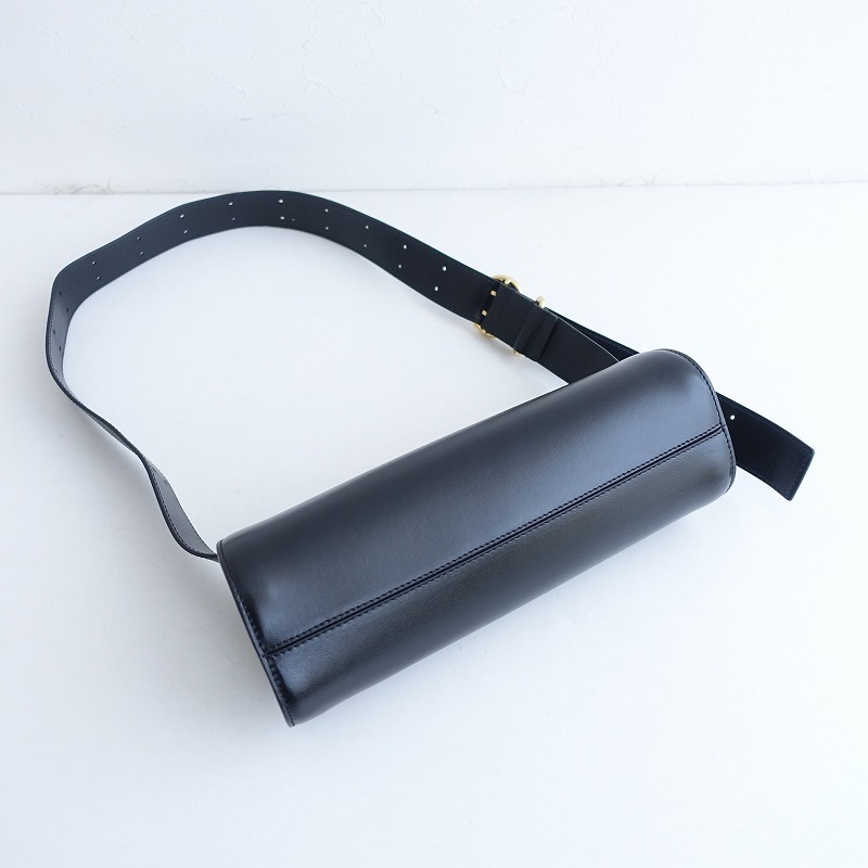 | JIL SANDERのカンノーロスモールです。カラーはブラックで、開口はマグネットボタン留めです。内側にオープンポケットが1個あり、ショルダーベルトは長さ調節できます。 |