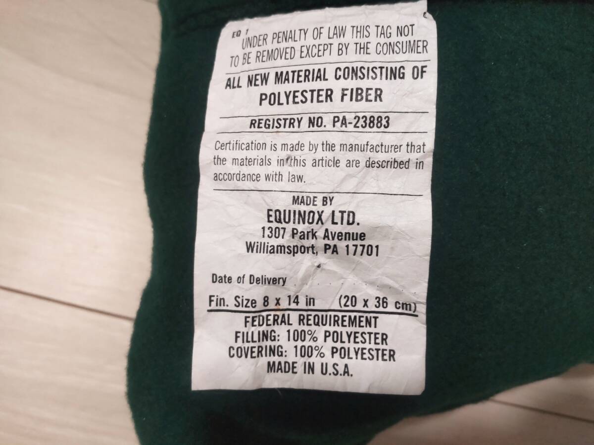 アメリカ、EQUINOX(イクイノックス)のアウトドア用まくらです ハイクオリティのアウトドアグッズを作っているレアなブランドです ■サイズは 素人採寸ですが 約32cmX23cmX12cm程になります ■重量は約250g程になります ■アメリカ製です ■表地はフリース地となっております ■内側の素材はポリエステルです ふかふかしております ■ユーズドになりますので使用感は多少あります フリース地全体に毛羽立ちがありますのでよろしくお願いします ■是非よろしくお願い致します
