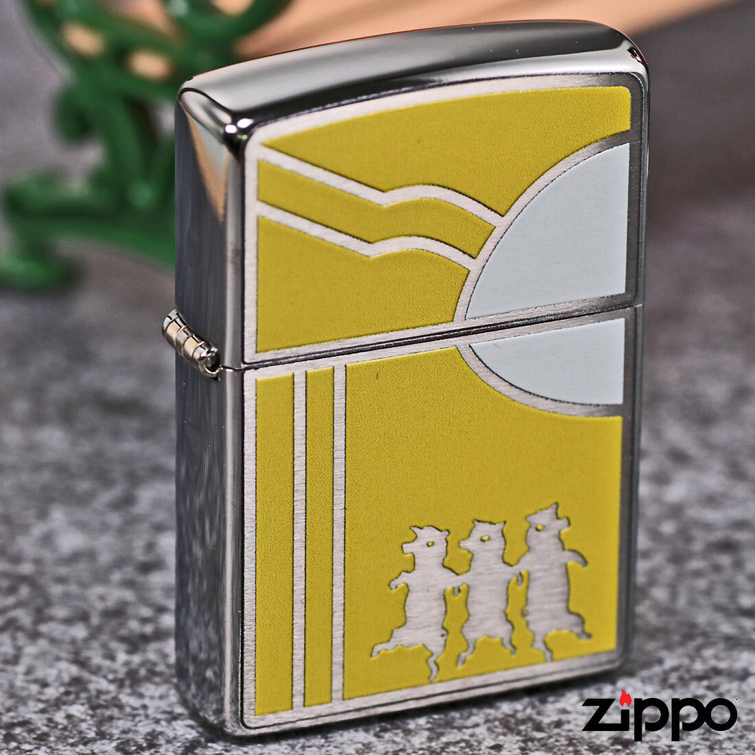 ・ZIPPO定番の#200FBブラッシュクロームに片面インクジェットの鮮やかなイエローで表現
