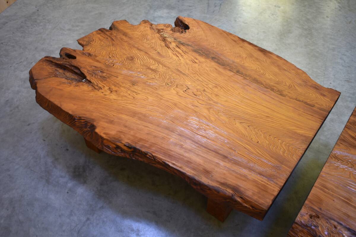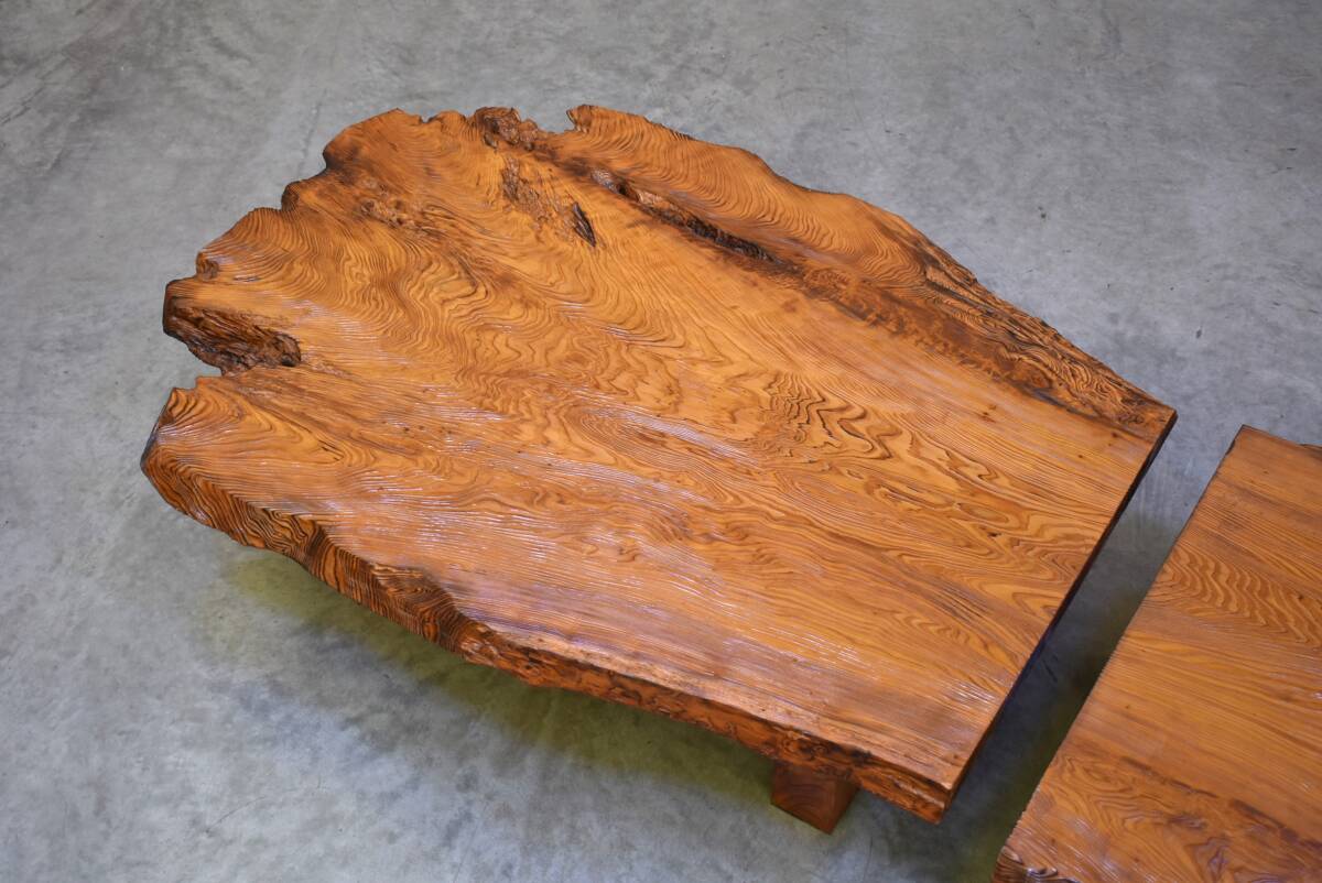 zyt2308ジ [一対組] 天然木一枚板座卓 浮造り 屋久杉? ローテーブル/木目/杢目/和室/和風/2台セット/2枚セット『仙台 引取歓迎』70628-01 | |||