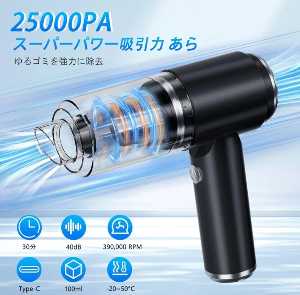 2025新登場】ハンディクリーナー ハンディ掃除機 車用掃除機 コードレス 車用・家庭用 強力吸引 4in1電動エアーポンプ機能付き Type-C充電 乾湿両用 低騒音 軽量 車載・キーボード・家具掃除 ブラック 日本語パッケージ&取扱説明書付き