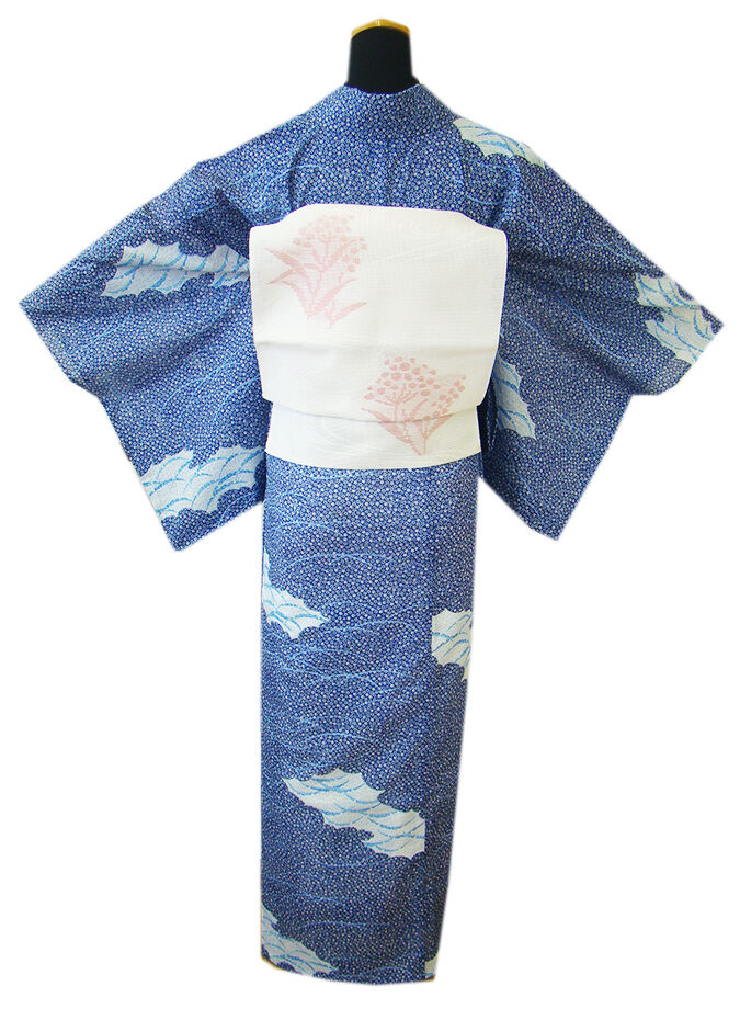 | 商品説明 | こちらのお品は夏物でございますので、7月~8月にお召頂ければと思います。 「絽」と言えば、紗と双璧を成す夏のお着物の生地で、 その最大の魅力は絶妙の透かし加減でございます。 清涼感溢れる地の風を通すしなやかさは夏に着物を着るという贅沢を 快適に愉しませてくれる事でしょう。 着物には、大きく分けて「袷(あわせ)の着物」と「単衣(ひとえ)の着物」と「夏着物」があります。 反物(表地)を着物に仕立てるときに、裏地類をつけるものを袷の着物、 つけないものを単衣の着物と呼び、胴裏や八掛といった裏地がつかない一枚ものの着物です。 また裏地がないため、座る時などにヒップのラインが目立たないよう、 居敷当て(いしきあて)の生地をつけることもあります。 居敷当ては付いておりません。 しなやかな手触りの滑らかなさらっとした肌触りは絹と間違ってしまいそうな「絽」の 洗える高級「ポリエステル」の生地で涼やかな風合いを醸しております。 青色地に白、ピンク色の小花に水色のつゆ草柄の染柄、 帯は「ポリエステル」の袋なごや帯(六通柄)でしなやかで扱い易く〆易く、 白色地に流水柄に薄赤色の花草柄の織柄がお顔映りも華やかな帯姿を奏でております。 帯〆は「正絹」の平組、虹色地に銀糸やラメ入り等の 編み込みの組紐(中国製)となっております。  |