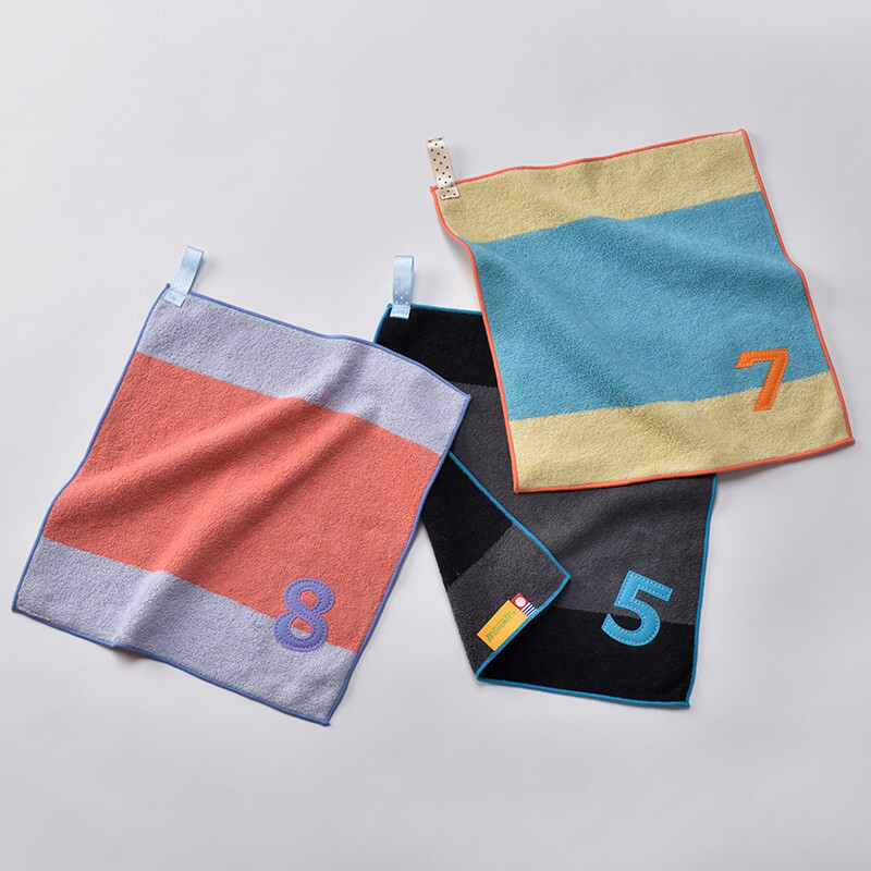 カラフルなカラーリングが元気いっぱいのハンドタオル。