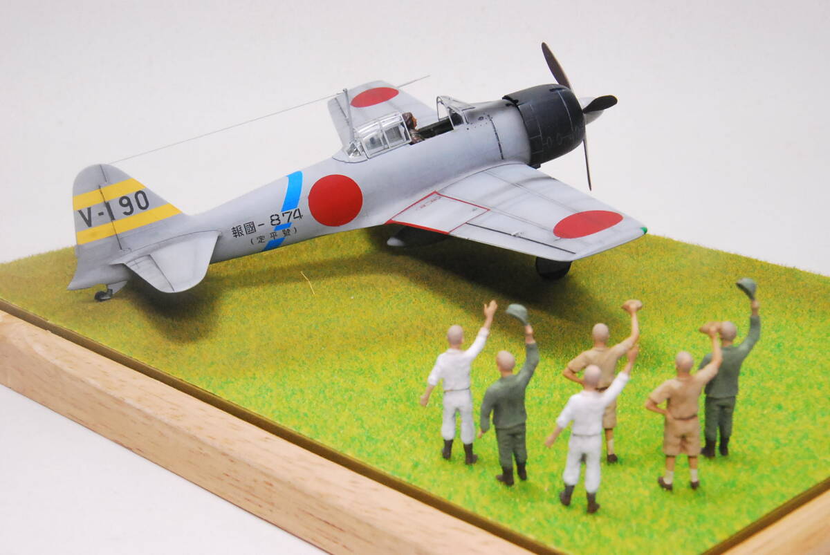 ご覧いただき有難うございます。それまでのゼロ戦(11型、 21型)とは少し性格の異なる改良型が32型になります。エンジンを栄12型から航空性能に優れた栄21型に変換し、主翼両端を50センチづつ切り詰め角型に整形し折り畳み機能を廃止したのが大きな特徴です。製作は台南航空隊(初代)所属機としました。機体はクレオスNO35明灰白色を使用しました。キットにはパイロットの他下士官と整備兵が付属されていたので展示台を作成しました。機体及び下士官、整備兵は固定していないので配置は自由です。発送は80サイズになります。| 出价者 | 信用 | 价格 | 时间 |