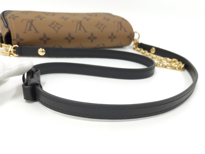 | ◆商品情報 | ・カラー:-- ・素材/ライン:モノグラムリバース ・サイズ:最大約 W22×H12×D5(cm) ・ショルダーの長さ:最大約50(cm) ・チェーンショルダーの長さ:最大約48(cm) ※多少の誤差はご了承下さい。 ・内側 ・オープンポケット×1 ・ファスナーポケット×1 ・カード入れ×3 ・製造番号:RFID |