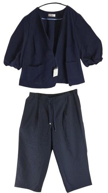 ジャケット パンツ ノーカラー 七分袖 バルーン袖 袖口ゴム 前ホック ウエスト後ゴム ウエスト紐有り |