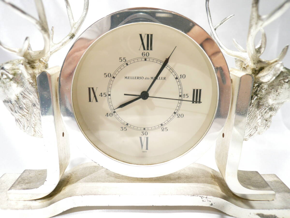 | 商品説明 | Mellerio dits Mellerの置時計です スレ、キズ、メッキ剥がれ等使用感有ります (写真で見るよりあります) 電池を変え時刻を合わせ8時間ほど経ちますが 1分程時刻が進んでいる感じです 鹿の飾りの片側に少しガタツキが有ります 時計は角度が変えられます 箱有りますが箱内の緩衝材が剥がれています 箱にはブランド名等の記載がないので オリジナルではないのかもしれません |