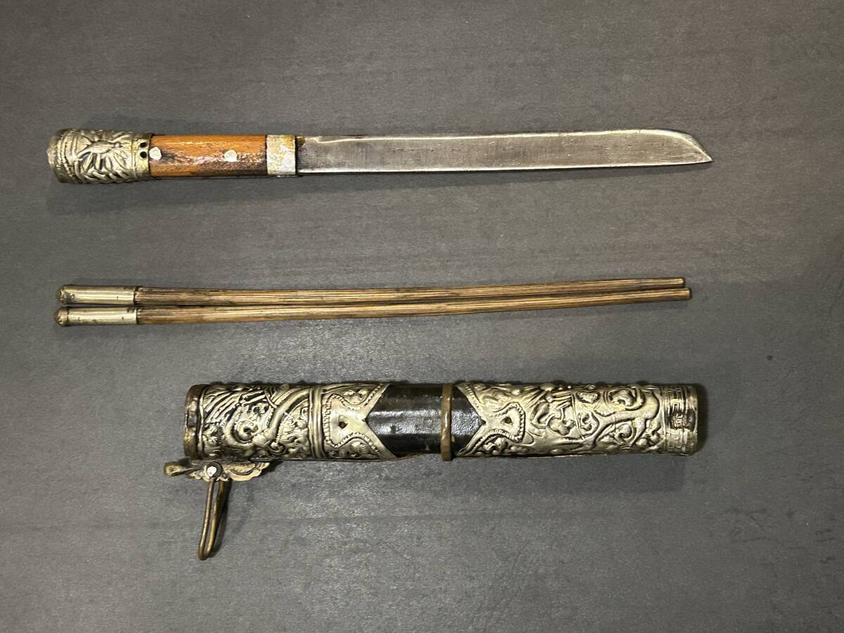 モンゴル民族 チベット 小刀と箸 銀金具 龍紋様| 出价者 | 信用 | 价格 | 时间 |