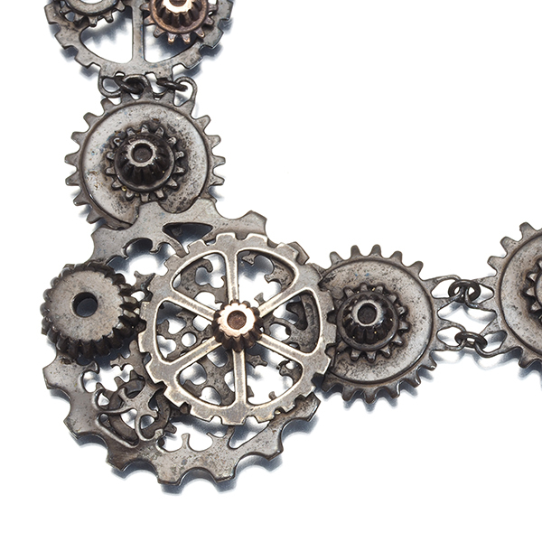 いくつもの歯車を連ねた迫力あるデザインが印象的なボッテガヴェネタの珍しく存在感のあるシルバー素材のネックレスです。 |