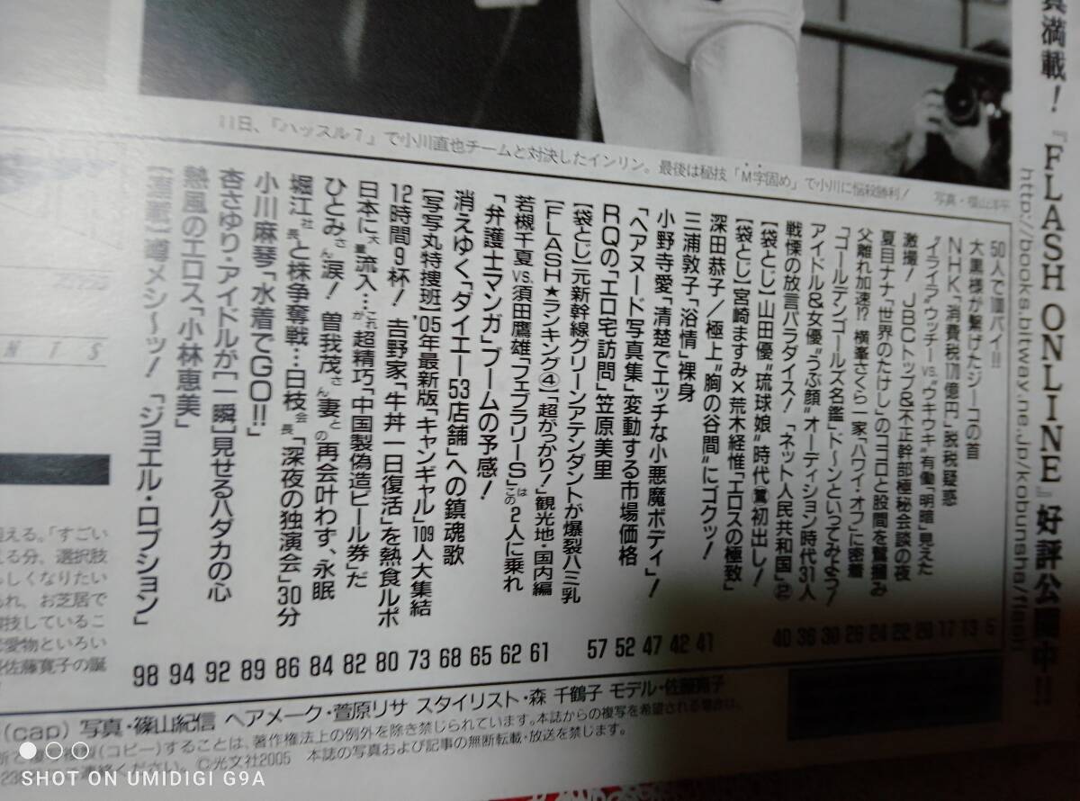 | 商品説明 | FLASH フラッシュ2005年3月1日号 NO.856 経年劣化が有ります(焼け、擦れ、傷) 袋とじ未開封 250g(1㎏弱・3㎝弱・A4サイズ位ならゆうパケットで同封出来ます |