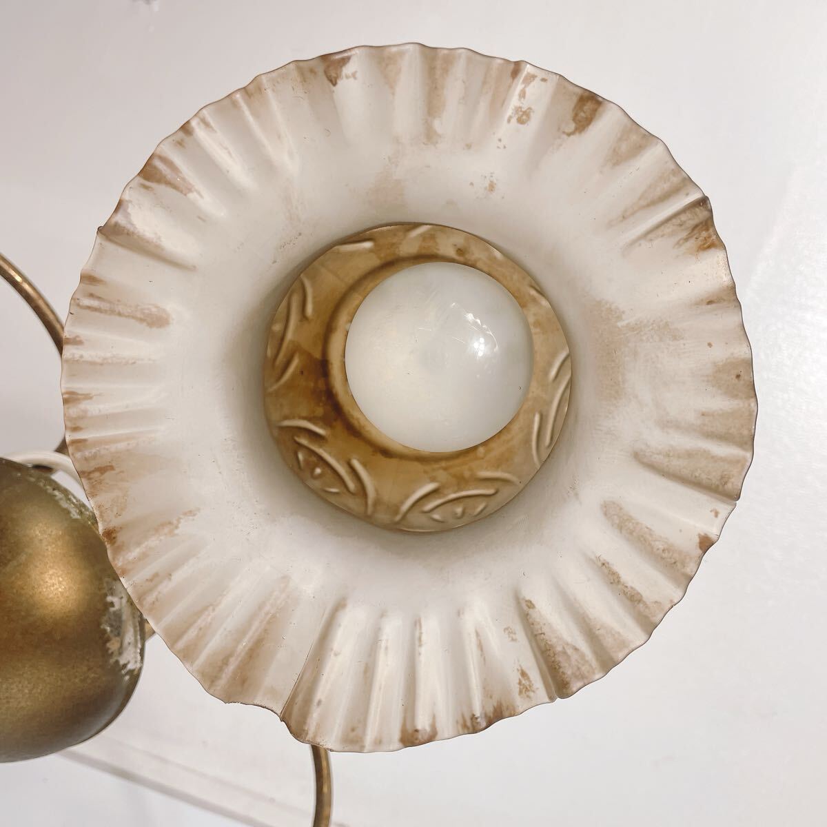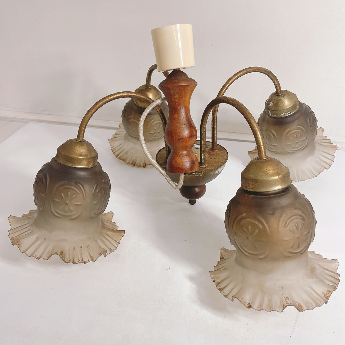 ◆シャンデリア アンティーク ライト 吊り下げ 天井 照明 磨りガラス 4灯 レトロ 現状品◆I1 |
