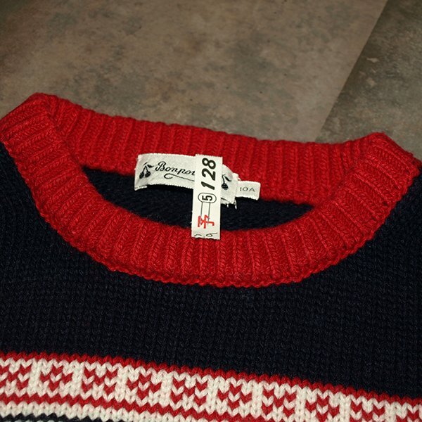 | ◆コメント◆ボンポワンの長袖セーターでございます。 厚手の生地にトナカイの柄をデザインした商品です。 肌さわりの良い商品ですのでこの機会にいかがでしょか | |||