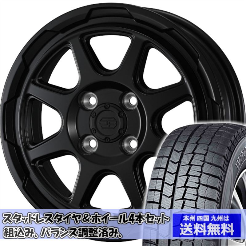 スタッドレスセット タント カスタム L350、360系 ウィンターマックス WM02 155/65R14 75Q ウェッズ スタットベルク セミマットブラック 2024年以降製造
