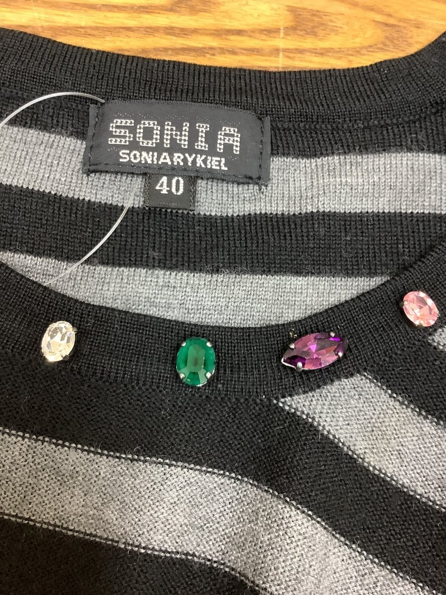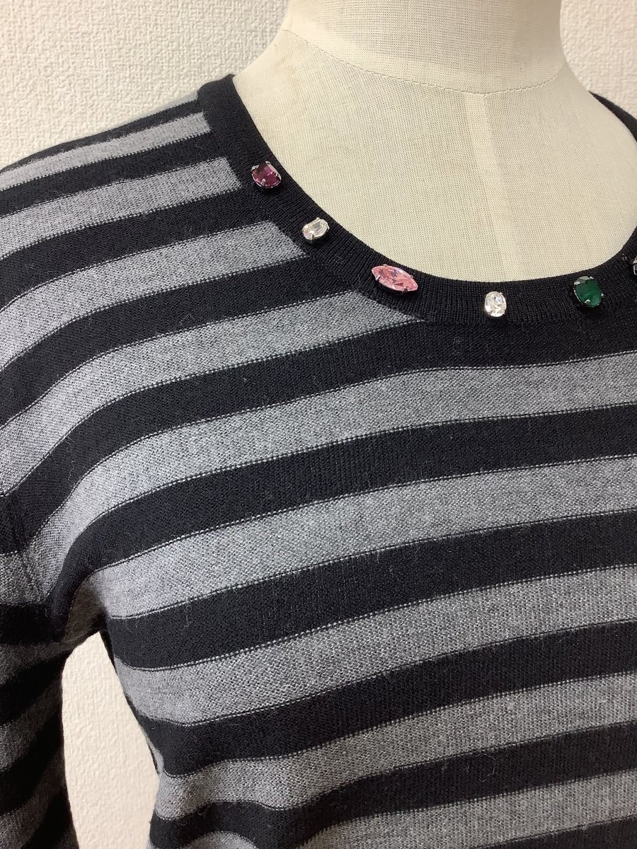 | ソニアリキエル (Sonia Rykiel) 首元ビジュー 黒とグレーボーダーニット 【表示サイズ】 40 【平置き実寸】 脇下身幅 42cmほど 着丈 56cmほど 肩幅 34cmほど そで丈 43cmほど 【季節感】秋冬向け 【状態その他】 目立った傷や汚れなし 特筆するようなダメージは見当たりません。 当店管理番号:10^141907 |