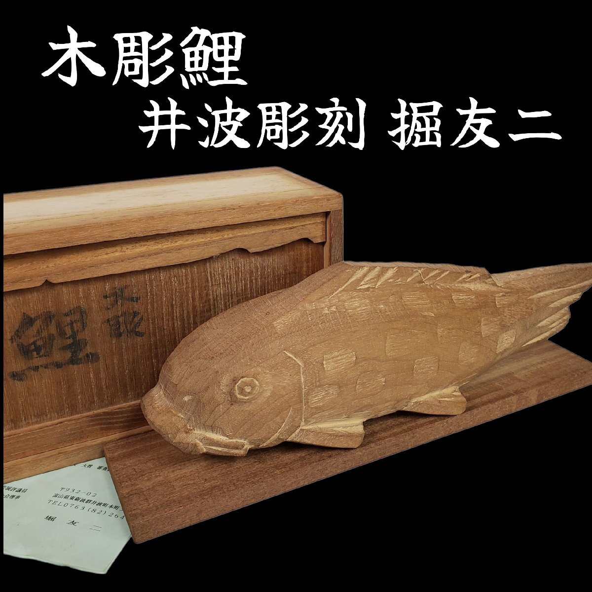 井波彫刻 堀友二作木彫りの鯉置物です。