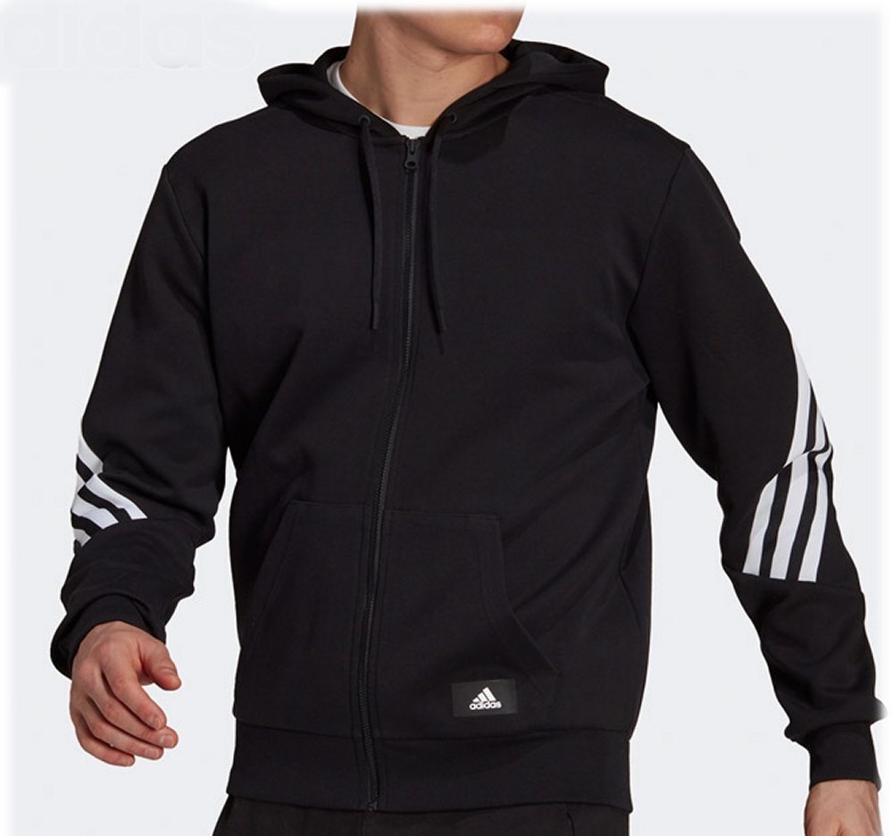 新品未使用品リラックスフィットフルジップ / 調節可能なドローコード付きフード綿57% / リサイクルポリエステル33%スウェット生地ではなく裏起毛でもありません。ジャージを少ししっかりさせたような生地です。カンガルーポケットリブ仕上げの袖口と裾アディダス正規品(直営店で購入) 品番GR4086 1540サイズ (メンズL) 身丈67cm 身幅51cm