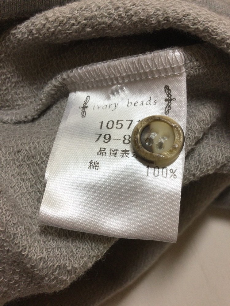 | 管理番号:135285 アイボリービーズ グレーカーディガン 薄手スエット生地 表示サイズ:79-87 実寸(参考)
