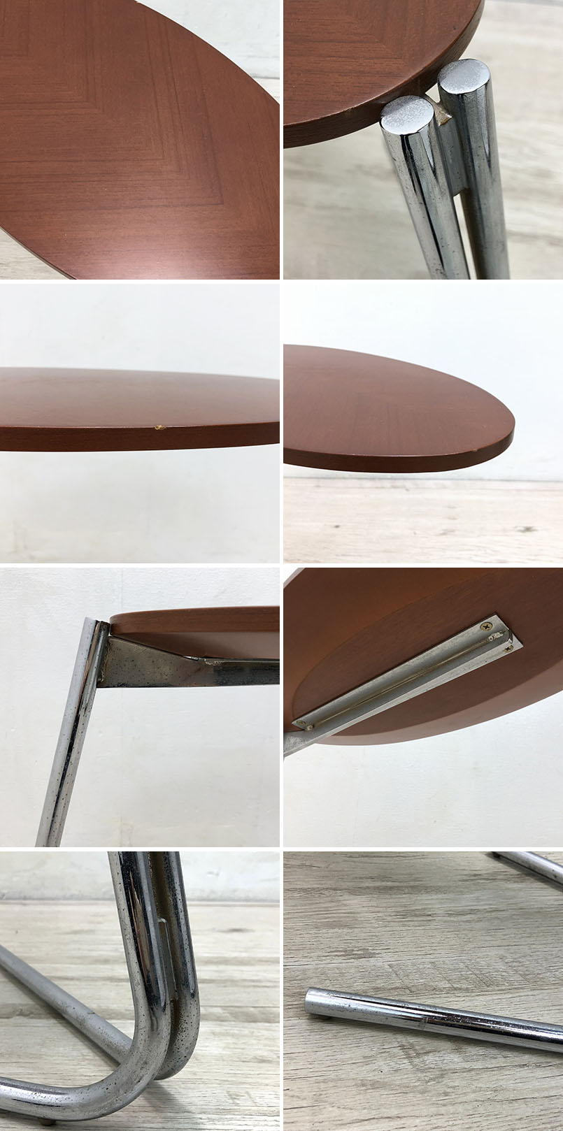 こちらはオーバル型 サイドテーブル スチールレッグ です。 中古品です。 すっきりとしたオーバル型の天板にスチールレッグがモダンな印象を与えてくれるサイドテーブルです。 コの字型なので、ソファやベッドの下部に脚を差し込み、手元に引き寄せてご使用頂けます。 照明や時計、本、スマートフォンや眼鏡など、身の回りのあれこれを置くのにちょうどいいサイズ。 メインテーブルの補助役としての使い方もおすすめです。 お気に入りのインテリアやグリーンを飾ったりと、使い方はあなた次第。 暮らしにあわせて多用途に使えるお品です。 この機会にぜひいかがでしょうか。 【コンディションについて】 使用感や小傷、脚にサビがあります。 詳細につきましては下記画像も併せてご参照ください。 ![]() 再良市場の他のお品物はこちらから!
