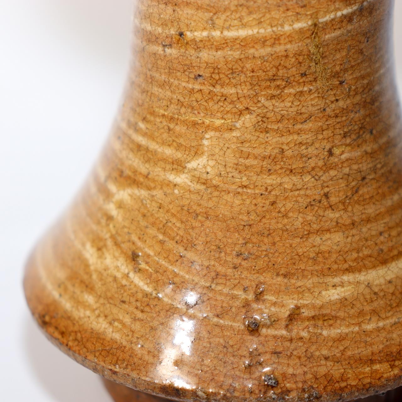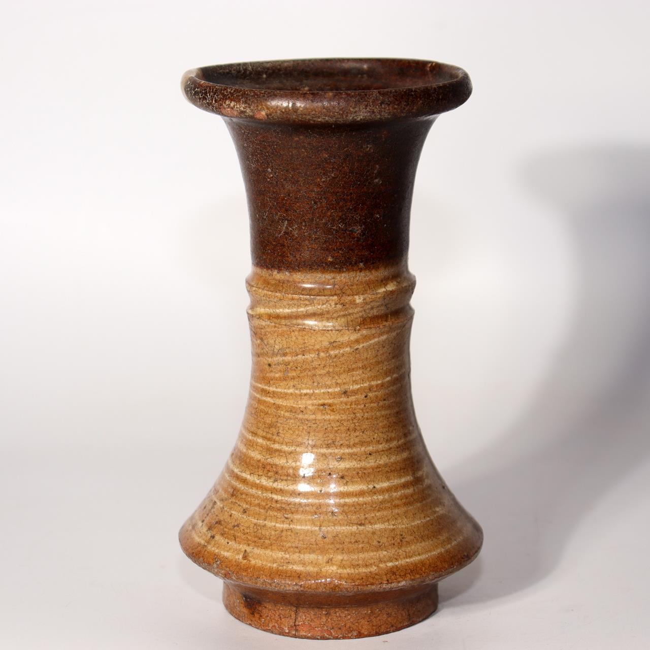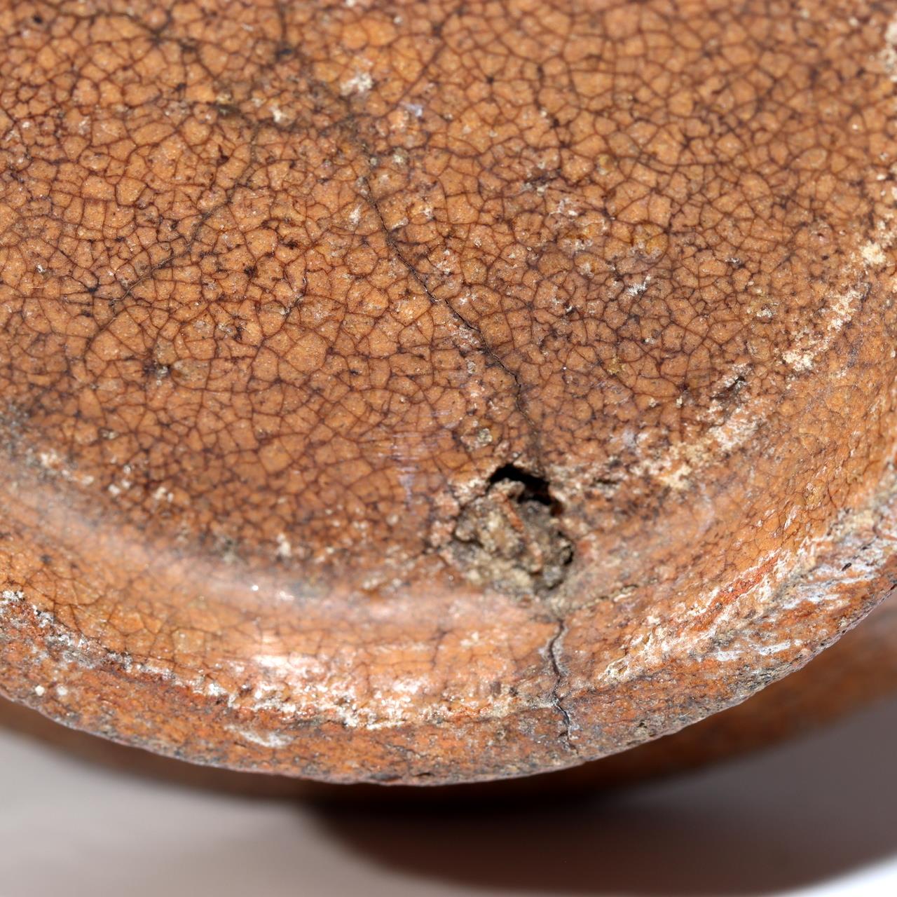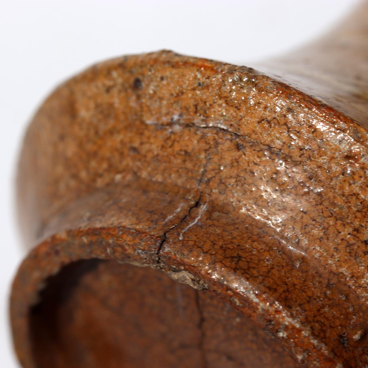 こちらは唐津焼の花瓶です。 素朴で温かみのある風合いと、口縁に施された修復が味わい深さを添えています。 【サイズ】 高さ:約14cm 底径:約7.5cm 口径:約7cm 重さ:約230g 【状態】 口縁部に修復があり、底部にヒビが見られます。 ぜひこの機会にご検討ください。詳細は写真をご確認ください。 |