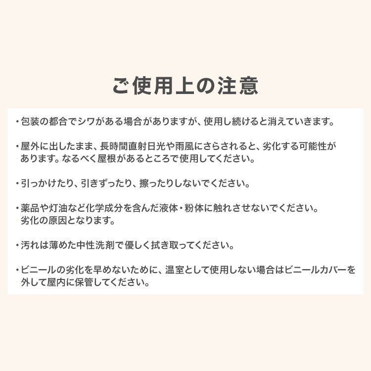 中がよく見える透明仕様です! また、適度に日光が注ぎこみ、植物が生育できる環境を保ちます。 ※こちらの商品はカバーのみの販売となります 【商品詳細】 サイズ:(約)幅70cm×奥行き50cm×高さ92cm 素材:ビニール 【注意事項】 ・商品はモニターによって色合いが異なって見える場合があります。 ・仕様/デザインは改良のため予告なく変更することがあります。 |
