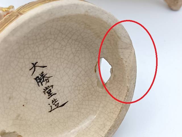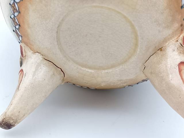 ・経年の汚れや、蓋部分にカケ、足付け根にヒビ等ございます。