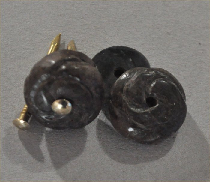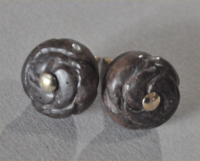 カメリアデザインノブサイズは16mm径厚み6mm ワッシャー14mm径厚み3mm磨き仕上げ素材スネークウッドこげ茶色の希少なスネークウッドのカメリアノブです。