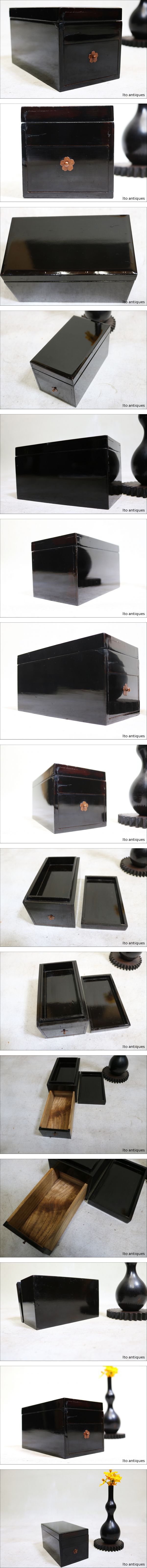 | 商品説明 | 《商品説明》 古い小抽斗、山形県庄内地方懸硯箱です。 時代は、明治の物です。このお品は、とてもコンパクトで可愛らしいお品です。 塗りは、黒漆塗りの鏡面仕上げですべてが映り込む良い塗りです。 左下、漆剥げありリペアしてあります。 材は、杉材にて作られ抽斗中は桐材で上手の作りです。 摘みは、銅製で桜の座の摘みが付けられています。 上部は蓋になっています。 綺麗に磨きアンティーク用ワックスにて仕上げ中もクリーニング済で抽斗の出し入れもスムーズになる様調整済ですので直ぐにご使用できる状態です。 この硯箱は筆入れとしては勿論、小物入れキーケースジュエリーケースにも良いと思います。 小さなサイズが可愛らしい懸硯箱、お薦めです。 是非ご検討下さいませ。 《サイズ》 約10.2㎝×約10.2㎝×約18㎝ |