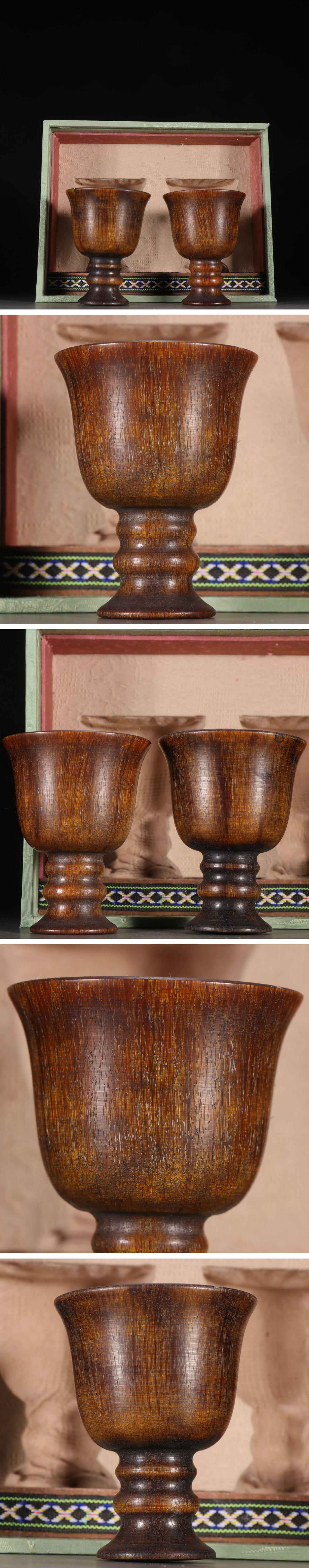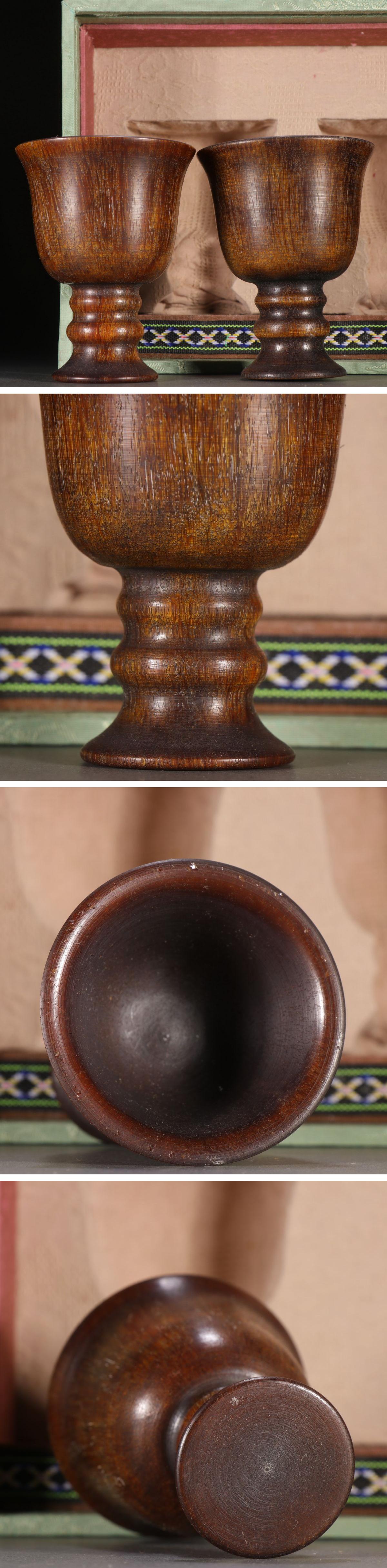 【清】某有名オークション購入 清時代 亜細亜角材 賞杯一双 材質保証 共箱 古置物 古擺件 古美術 時代コレクション7L9-GF4