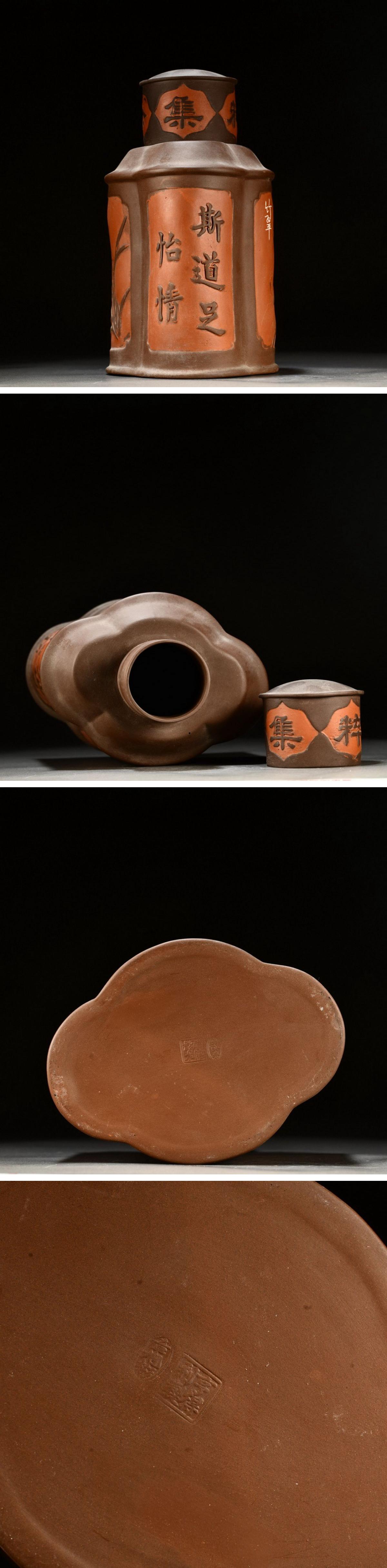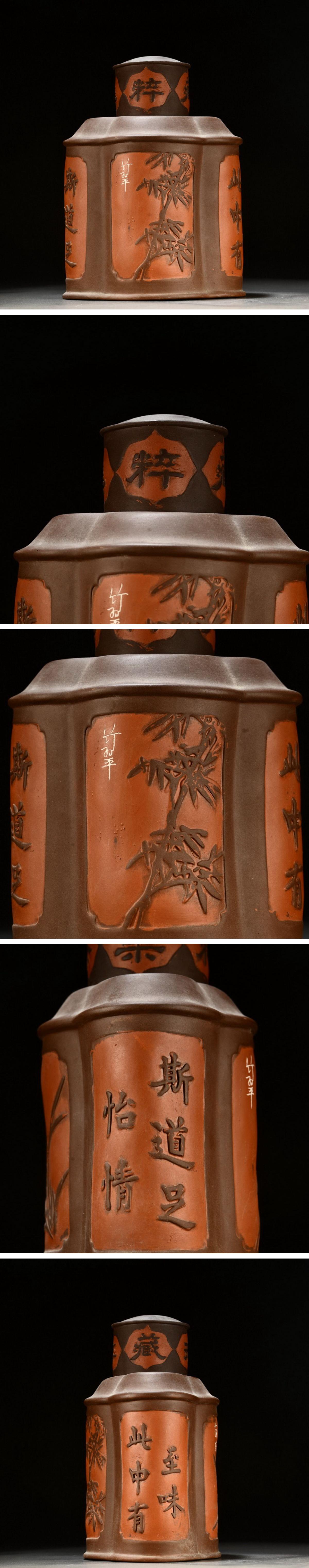 【清】某有名オークション購入 清時代 紫砂朱泥 漢詩紋茶葉入 茶煎道具 材質保証 古置物 古擺件 古美術 時代コレクション7L9-ZE3