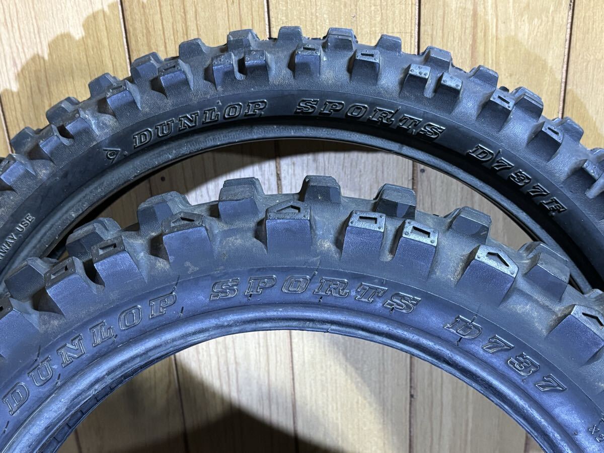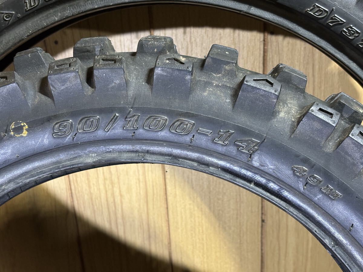ダンロップD737 90/100-14 70/100-17前後セット中古タイヤになりますのでジャンク扱いです。発送はラップにて簡易包装で送ります。クレーム、返品不可。