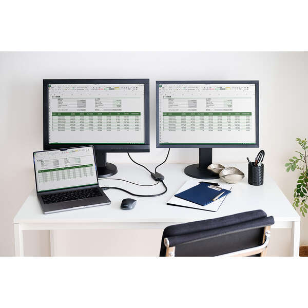 | ●安定接続のための独自設計。送受信信号の認証試験に基づく計測のもと、 パソコンとHDMI分配器間で通信するデータ品質を安定させる設計です。 接続デバイス間で生じやすい相性問題を最小限に抑え、スムーズな操作体験を提供します | |