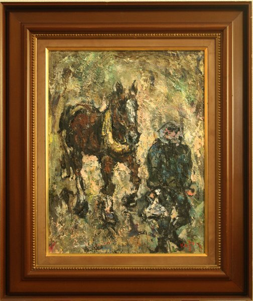 | ★商品説明★ | 秦森 康屯(はたもりこうとん) 1923-1994 広島県三原市生まれ 関西独立賞第1席、25周年記念賞受賞 鉄鶏会結成、西宮市展市長賞第1席受賞 厚塗りの筆致による独自の画風を確立した。 <作家> 秦森康屯 <タイトル> 「馬と人」 <技法> キャンバスに油彩 <サイン> 画面下部にサイン キャンバス裏にタイトル・サイン <サイズ> 画 53×41cm P10号 額 75×63cm ガラス付き <コンディション> 額の所々にキズ、裏板にややヤケ 画面は良好です <付属> ダンボール合わせ箱(かなり傷みあり) <その他> 真作を保証致します この他にもいろいろと出品しています。よろしければ、「出品中のオークション」よりご覧下さいませ。 <臨時休業等のお知らせ>はこちらからご確認下さい。 |