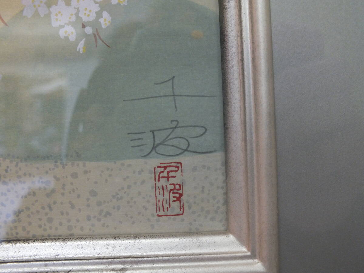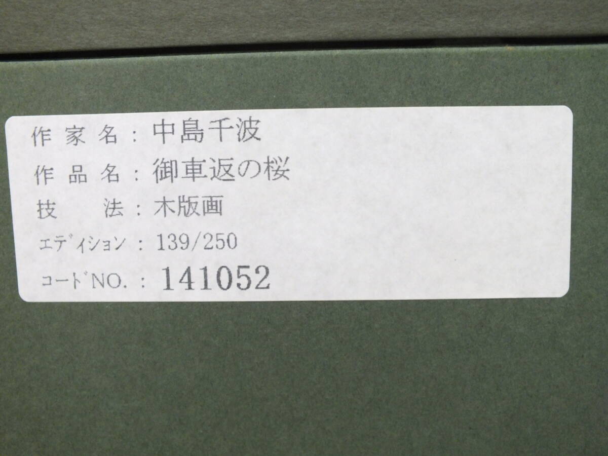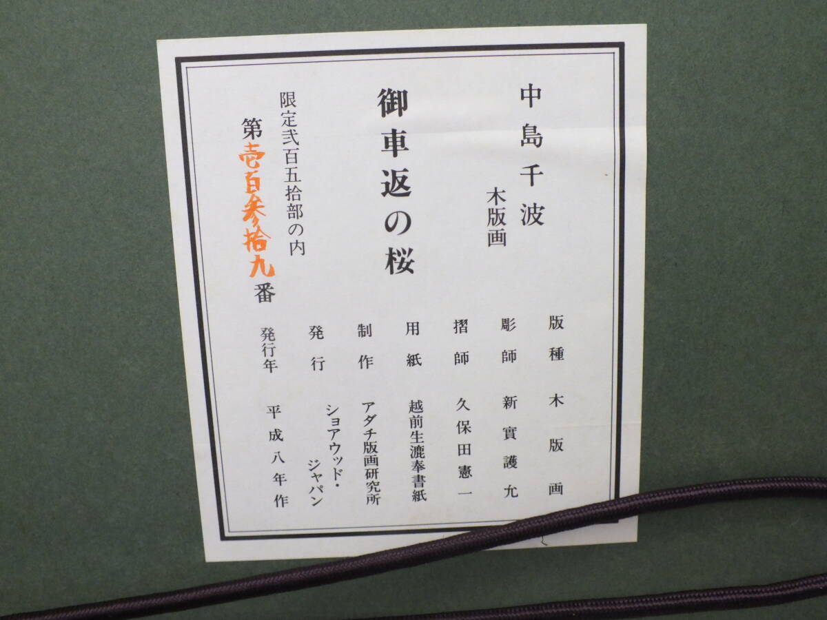 | ★【真作】中島千波 木版画「御車返の桜」額装 サイン エディション入り タトウ箱 アダチ版画★ | |||