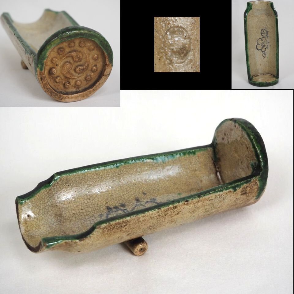 | 商品説明 | 約 11×5.4×2.3cm 豊楽焼について 豊楽焼は四代豊助が茶器などに漆仕上げを施し、一見漆工芸品かと思うような、蓋をあけて中を見ると釉薬と絵付けがしてあって焼き物と初めてわかる、そういうものを考案し、これを「木具写」と命名した。大変に斬新な手法、そして丁寧な仕事ぶりから尾張藩の御用品として採用された。豊楽焼はまさに愛知県のお宝といえる。 ご覧のように、大珍品豊楽焼『豊助』銘 茶量です。豊楽焼は、愛知県名古屋市中区大須(旧・前津)の万松寺南の隠郷(香久連里)で焼かれた軟質陶器で、江戸時代後期から大正年間にかけて、130年以上にわたって焼きつがれてきたが、現在は途絶えている。わずか130年しか生産されておりません、従って残された物は大変少ない、まさに愛知県のお宝といえる、コレクションの価値が非常に高い。ニュウ、縁にホツが見られますが、総じて良好な状態です、詳しくは写真でご確認ください。なんでも鑑定団で茶道具3点の鑑定金額は80万円、食籠1点15万の鑑定結果が出ています、ご参照ください。 |