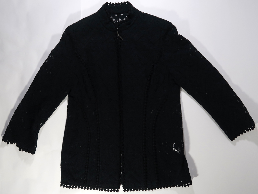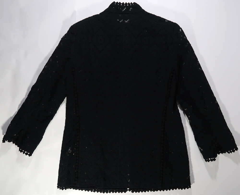 出品は画像の物のみです。シワや多少の擦れや汚れはあるかもしれませんが、特にひどいダメージはないです。中古としてみれば状態は悪くないです。ファスナーについている小さいラインストーンが一つ紛失しています。サイズは着丈が73cmくらい、肩幅は40cmくらい、袖丈は57cmくらい、身幅は48cmくらいです。生地は基布がナイロン100%、ししゅう糸が綿100%、別布100%です。