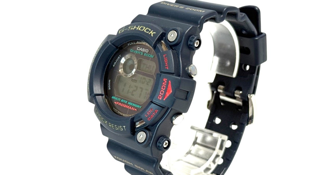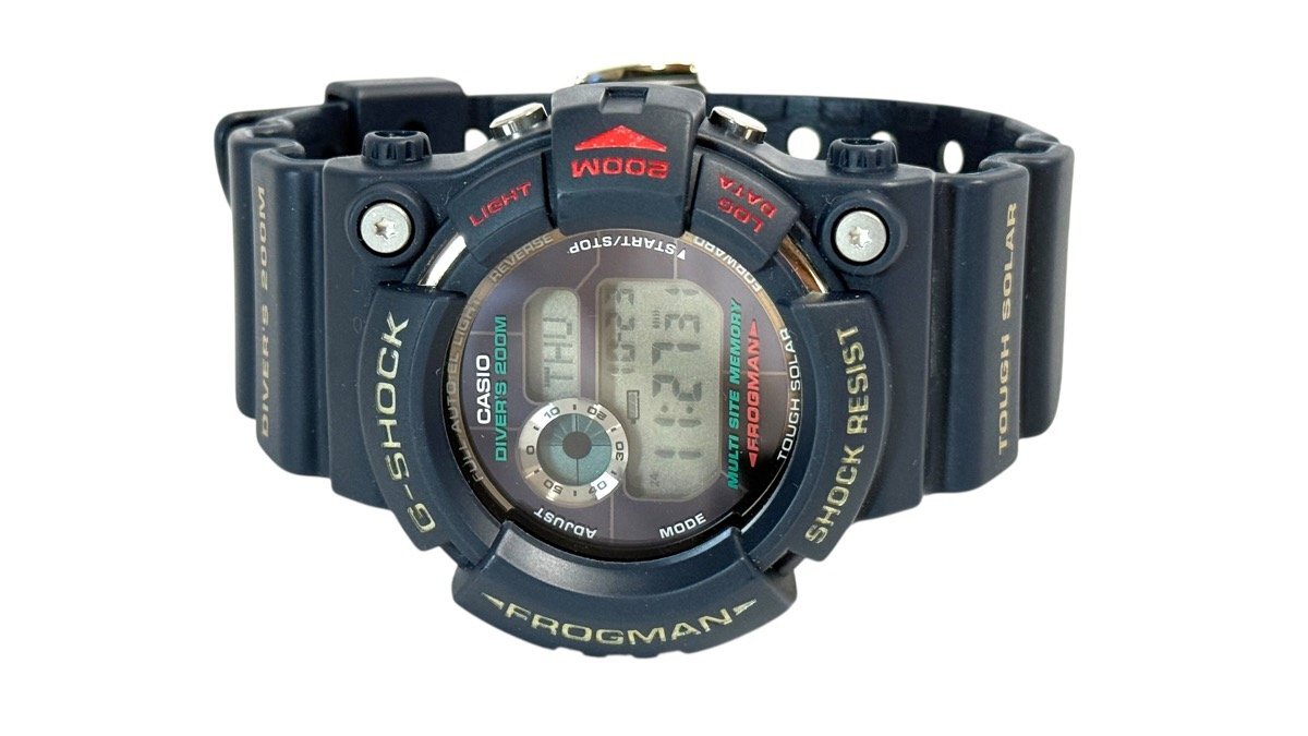 | ご覧いただきありがとうございます! 【ブランド】 カシオ 【商品名】 G-SHOCK FROGMAN カシオの腕時計です。大人気のフロッグマンのご紹介です。 【ムーブメント】 タフソーラー 【サイズ】 ケース4.5㎝ 【コンディション】 ランク『N』 補足:10月19日に二次電池を交換し、正常に動いています。現状でのお渡しです。未使用保管品です。
