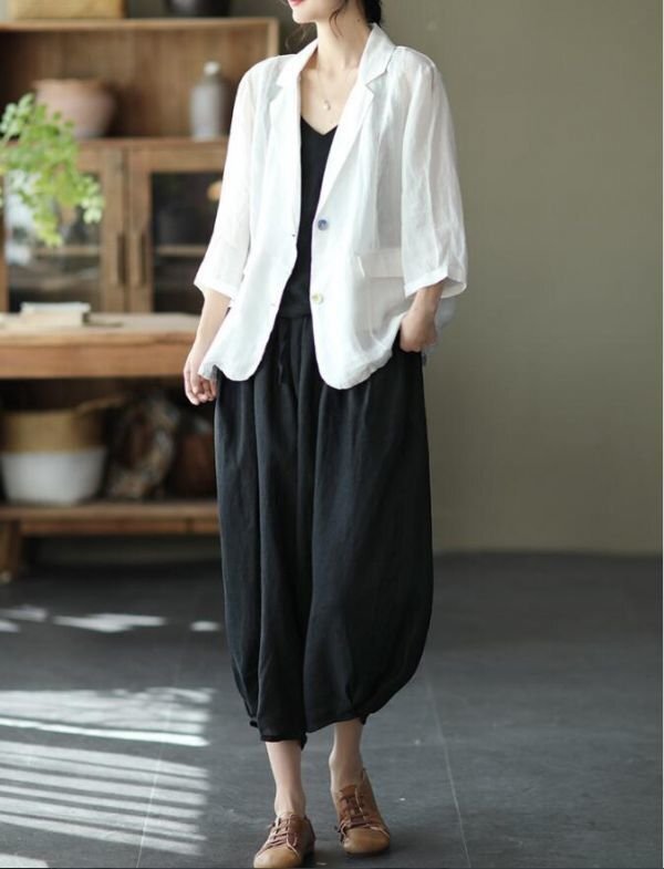 秋新品 カジュアル 大きいサイズ おしゃれ ゆったり 素敵な 綿麻 無地 サルエルパンツ ワイドパンツ ★ 黒 /XLサイズ [浏览原始页面]
