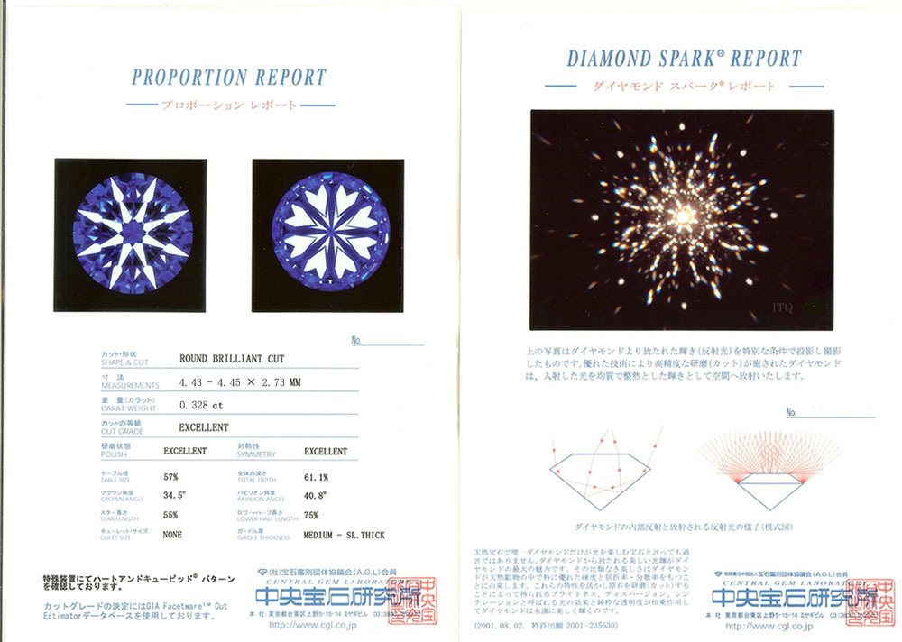 | カット:トリプルエクセレント(3EX) ハートアンドキューピット(H&C)中央宝石研究所 鑑定書付 |