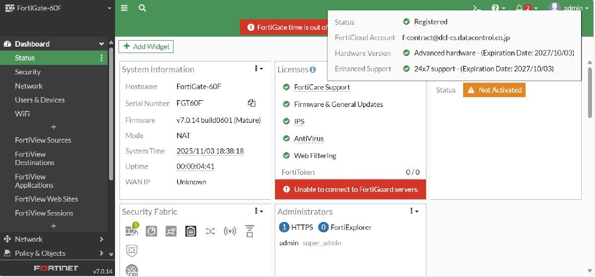 | ご覧いただきありがとうございます。 こちらは Fortinet(フォーティネット) の高性能UTMルーター「FortiGate 60F(FG-60F)」です。 小規模オフィス・店舗・在宅拠点など、安定したネットワークとセキュリティを求める環境に最適です。 動作確認済み・初期化済み・清掃済みで、すぐに導入可能。ACアダプター付属、ライセンス期限:2027年10月03日です。 【製品の特徴】 ・IPS/NGFW/アプリ制御など多層防御で高いセキュリティ性能 ・IPsec/L2TP/PPTP対応VPNでリモートアクセスも安全 ・IPv4/IPv6デュアルスタック対応、最新ネットワークに適応 ・ギガビット対応ポート搭載で高速通信を実現 ・ファンレス静音設計で長時間稼働も安心 ・FortiSwitch・FortiAPとの連携で拡張性抜群 【状態】 Bランク。使用に伴うスレやキズや汚れがあります。 【おすすめポイント】 ・Fortinet製UTMの中でも高コスパな人気モデル ・小規模企業・SOHOのVPN構築やセキュリティ強化に最適 ・リモートワーク・在宅環境の安全な通信を実現 ・すぐに使えるセットアップ済み・ACアダプター付属 |