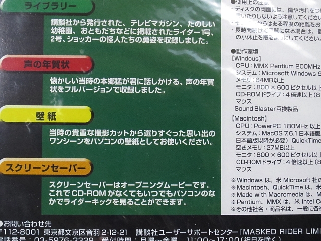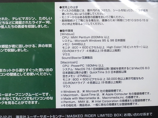 ・CD-ROM「仮面ライダー」ライブラリー ・未開封 ・MASKED RIDER LIMITED BOX 2000年発売、 |