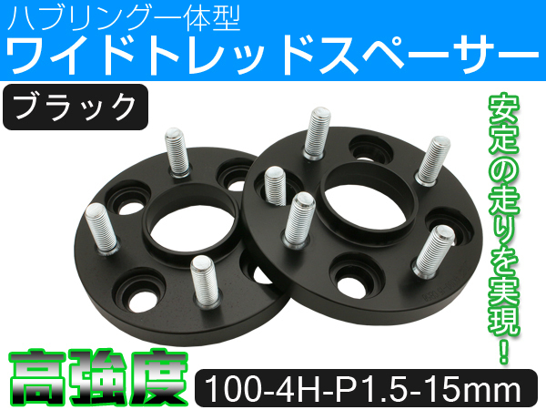 | ハブリング付 ワイドレッドスペーサー PCD100 4穴 ネジピッチ1.5 厚み15mm ブラック |
