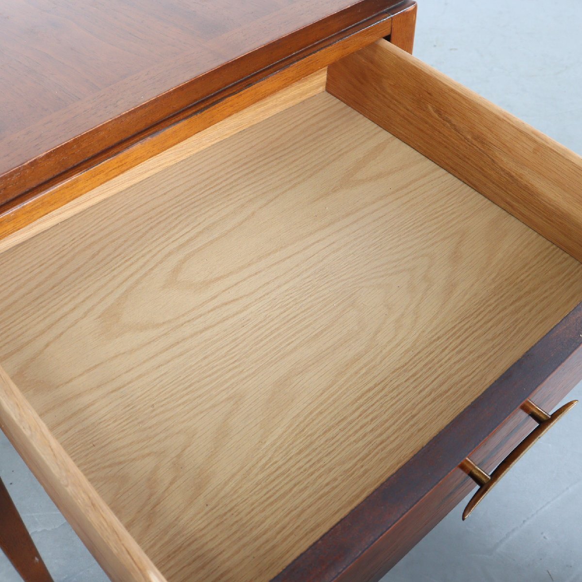 | 商品説明 explanation | 1970年頃のミッドセンチュリー期を代表する家具メーカー「LANE」社製のサイドテーブルです。 ウォールナット材が使用されており、ミッドセンチュリー期らしい良い雰囲気です。 引き出しに書籍や小物の収納することができ、ベッドサイドやリビングなどの場所に最適なサイズ感です。 ご自宅や店舗にいかがでしょうか。 |