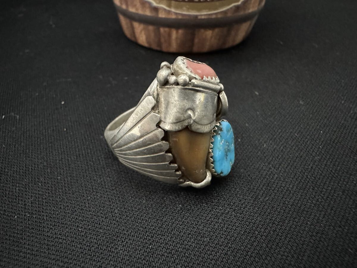 インディアンジュエリー 925シルバーリング ベアクロー ターコイズ サンゴ 熊爪 刻印 ナバホ族