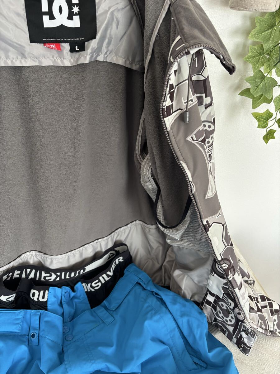 DCとQUIKSILVER Lサイズスノーボードウェア、グレーと青のコンビネーシン!