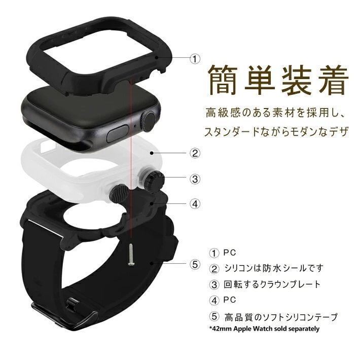 【2in1、一体型設計】:保護ケースと交換バンドが一体化されたデザイン、Apple watch 本体にぴったり合わせて、装着した後に、整体のスタイルが瞬間にスポーツ風に変わります。 外観設計がシンプルで、男女兼用で、さまざまな場合にも適合します。