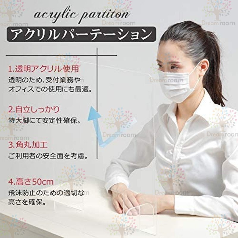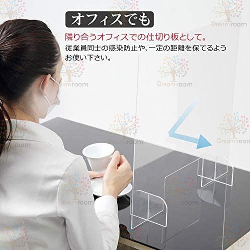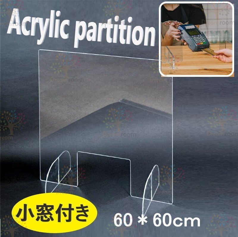 小窓付き 透明 アクリルパーテーション 60×60cm 間仕切り 飛沫防止 飲食店 会議室 デスク 600mm