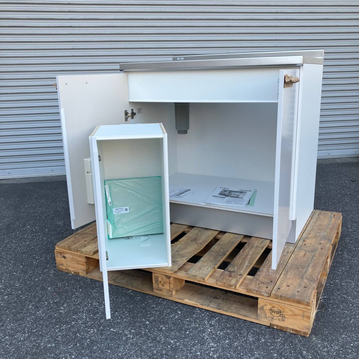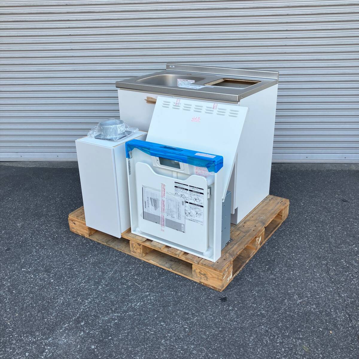 ☆【未使用】リクシル コンパクトキッチン 左側シンク 吊戸棚・レンジフード・幕板付き 水栓・コンロなし 51114TN03【店頭引き取り限定】