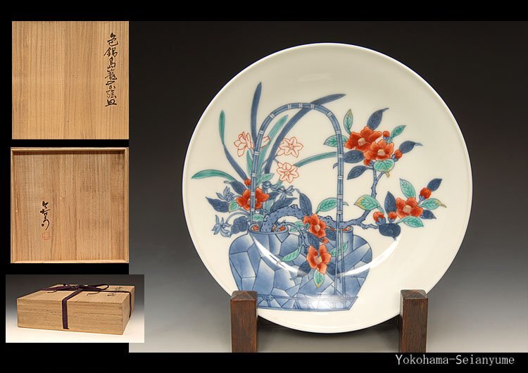 ☆星夢☆20 今泉今右衛門 色鍋島籠花絵皿 共箱  [浏览原始页面]